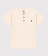 - Nieuwe pasvorm van het essentiële T-shirt: boxy volume en Tunesische opening met knoopjes.