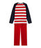 - Een iconische jongenspyjama met 3x3 strepen en opvallend ankermotief. Kies het ruime sop! Deze boucléfluwelen jongenspyjama bestaat uit een bovenstuk met brede strepen en effen mouwen en uit een effen broek. Deze lekker warme en zachte kinderpyjama is verkrijgbaar in twee versies. Echt iets voor trendy matroosjes.
